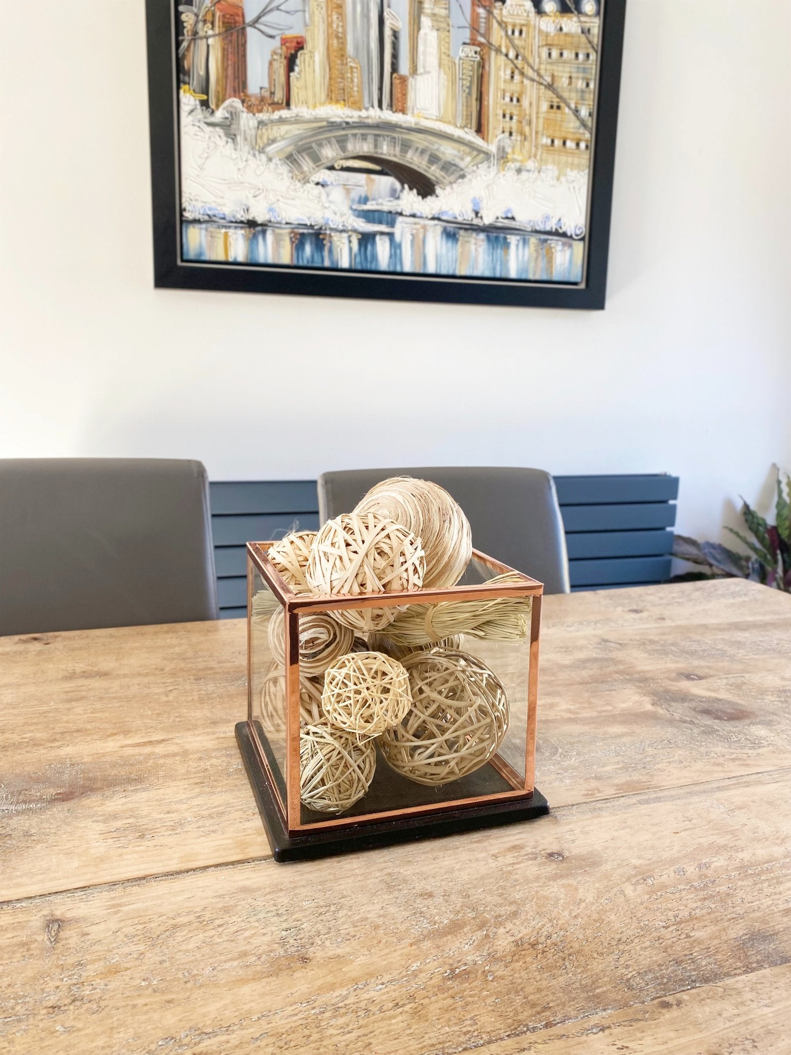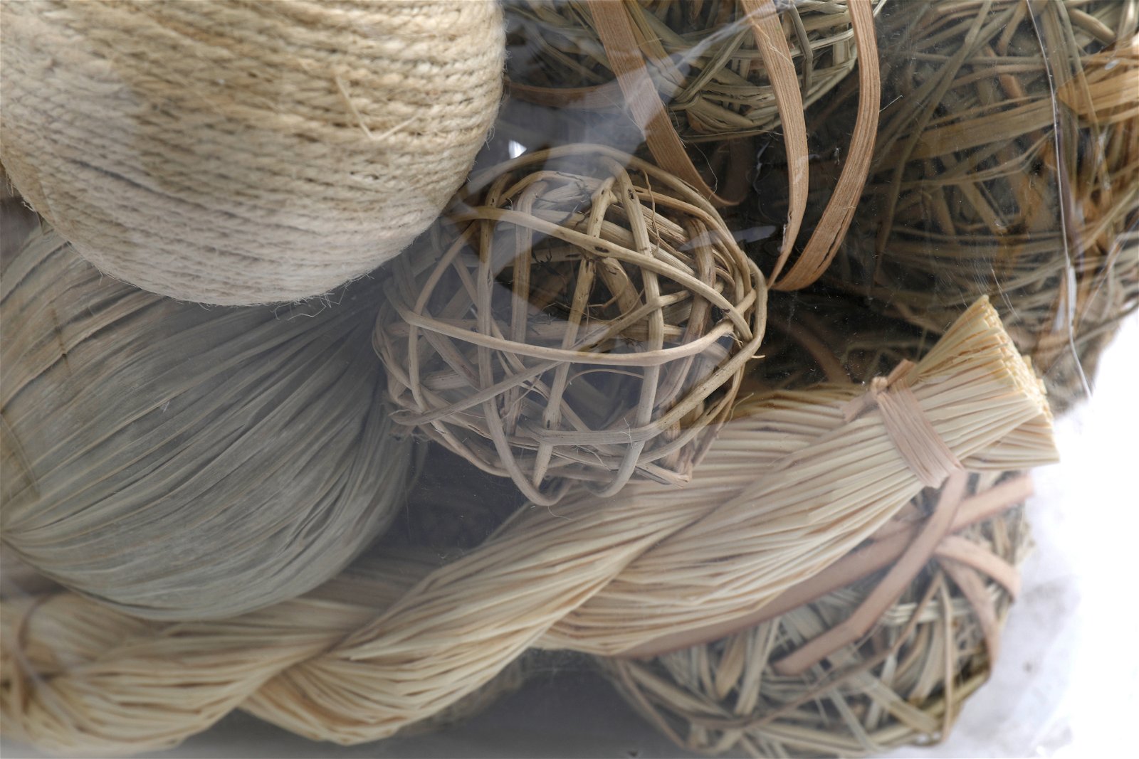 Small decorative accessories made of natural materials that are used to add texture and interest to a room's decor. The balls are made of materials such as rattan, seagrass, and jute and are crafted to create spherical shapes. The natural materials used to make the balls give them a rustic and earthy appearance that complements a variety of decor styles, including bohemian, coastal, and farmhouse-inspired interiors. The balls are lightweight and vary in size, making them ideal for decorating and styling different spaces. The ball accessories can be used in a variety of ways to add visual interest to a room. They can be arranged in a bowl or tray as a centrepiece on a coffee table or dining table, or they can be placed on a shelf or mantel as a decorative accent. They could also be hung from the ceiling or placed in a basket to create a unique and eye-catching display. Approx twenty pieces. Measurements: D20 x H36 x W26cm