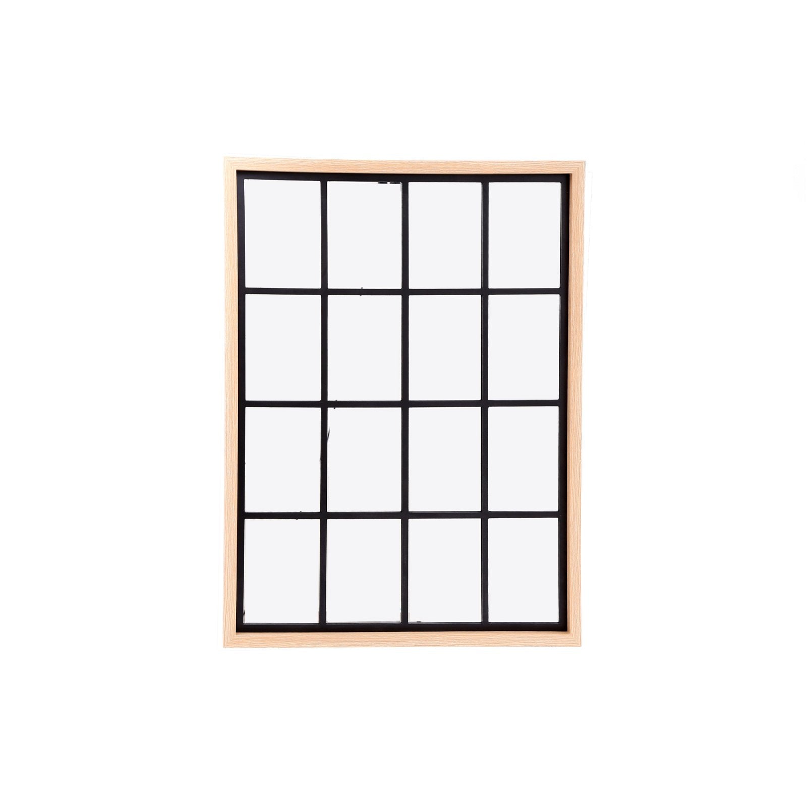 Natural wood coloured window mirror. Making a striking decorative focal point and helping to reflect light and make your space look bigger. This generously sized window-style mirror will look fabulous in any home. Rectangular shaped, can be hung in any room of your house. Made of MDF. Features 2 points for wall hanging vertically to the rear. Measurements: D2.5 x H80 x W60cm