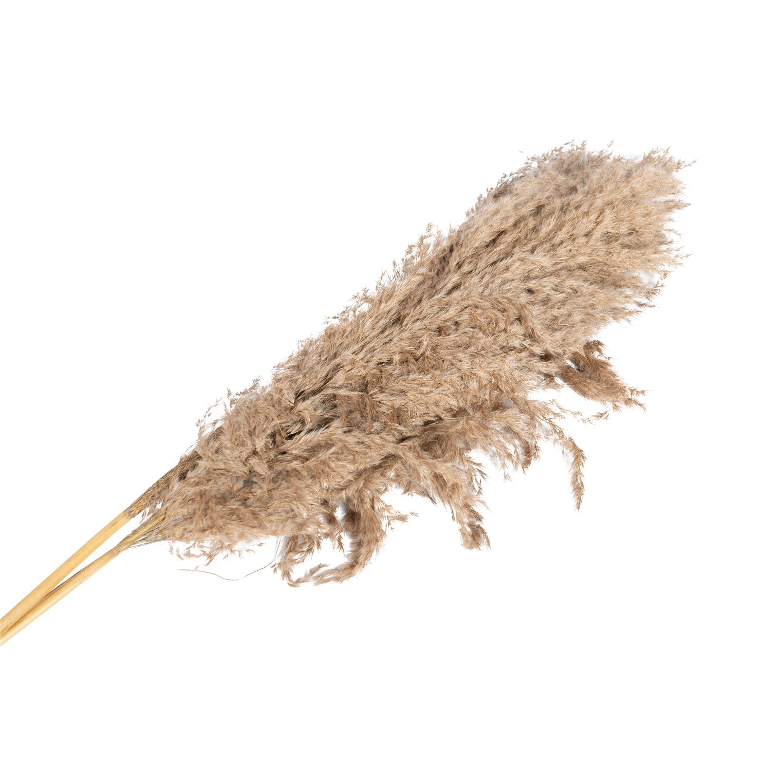 A packet of three stems of naturally dried pampas grass. A great addition to an existing bunch of artificial flowers to add texture or as a display on their own. The length of the stems are 31cm. Measurements: D4 x H79 x W17cm SKU: NI0925