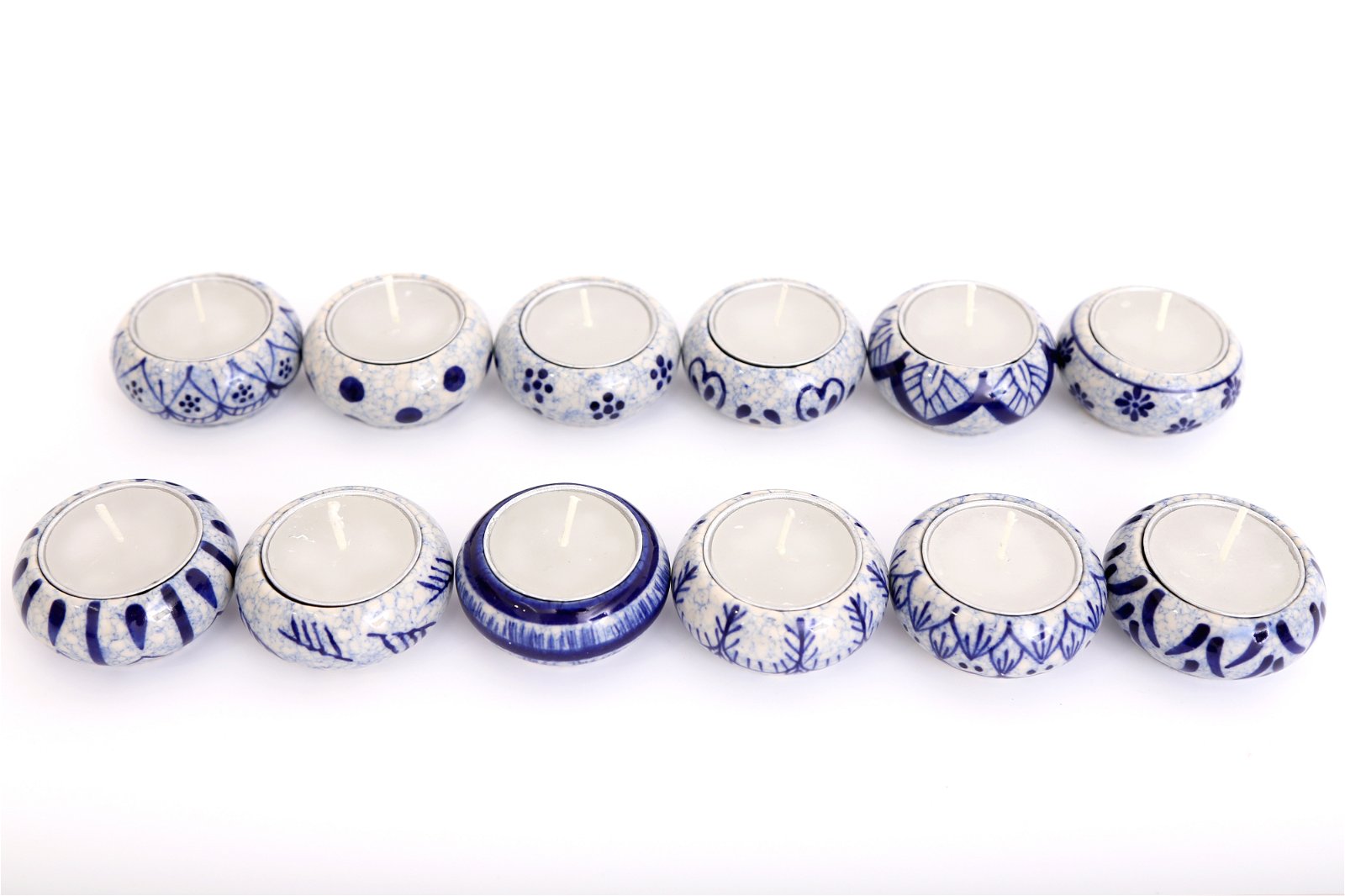 Pack of 12 Ceramic Blue & White Crackle Tealights