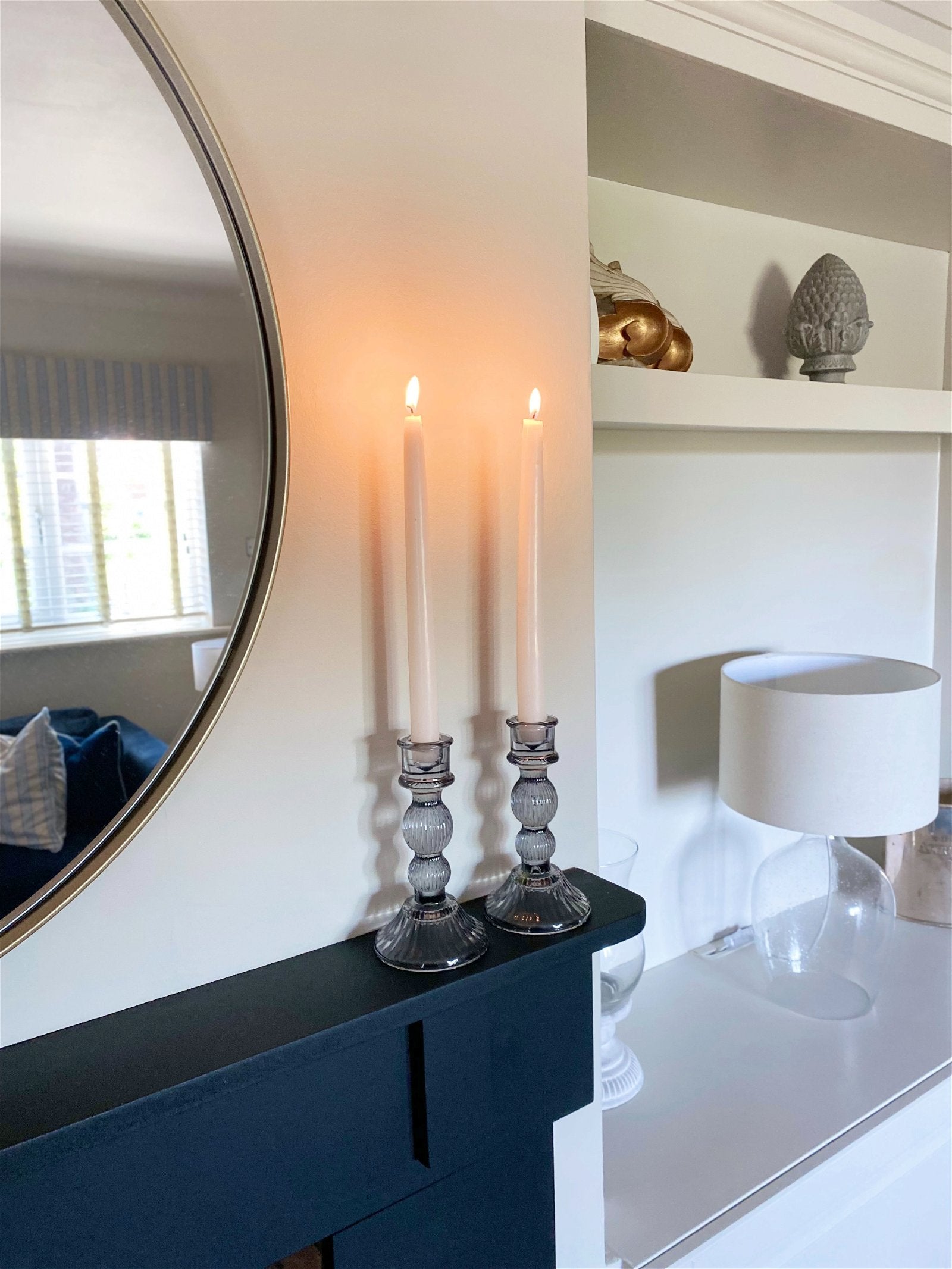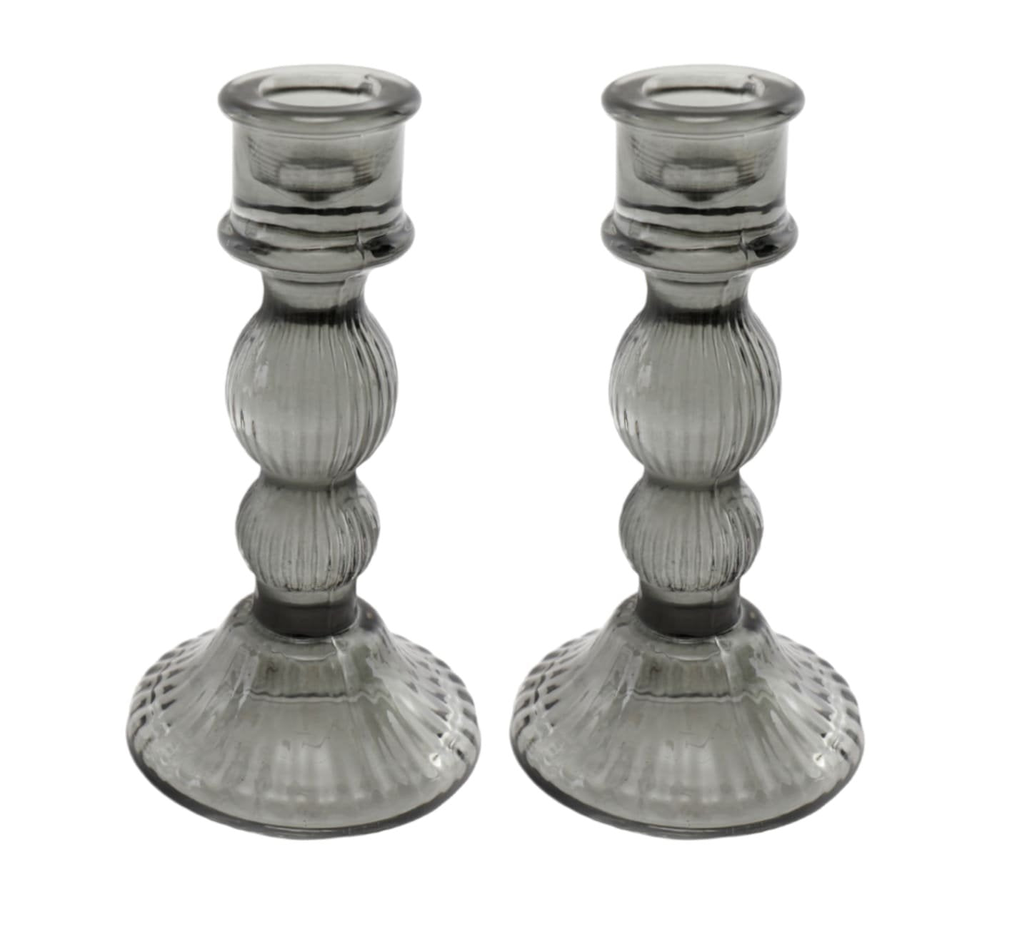 Pair of taper candle holders. Crafted from glass to create a vintage-inspired design with a black glass colourway. Suitable for taper or dinner candles. Measurements: D8 x H15 x W8cm