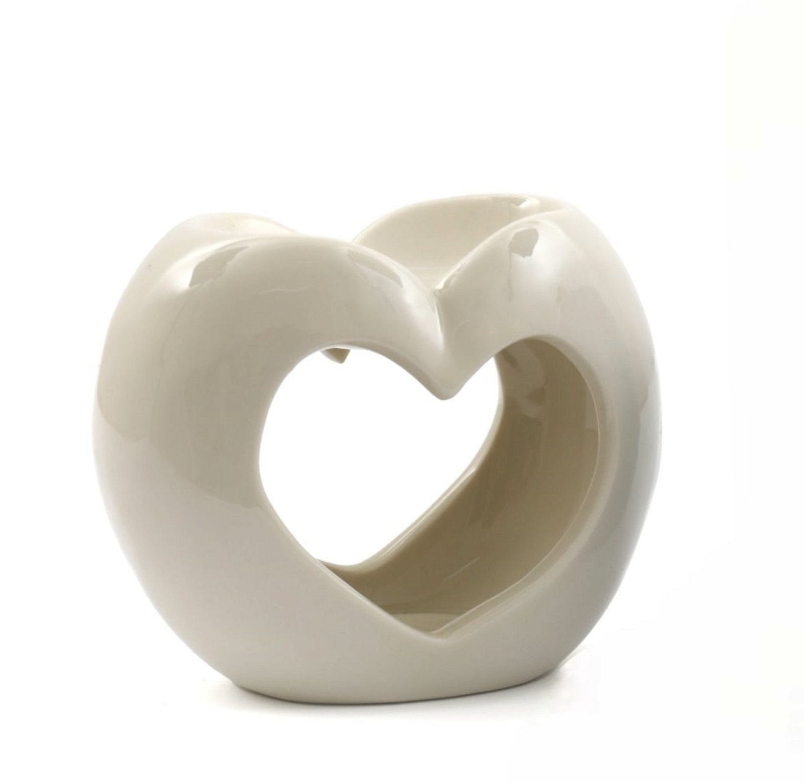 The pearl coloured, heart-shaped wax or oil burner is a beautifully crafted piece with a modern design. The burner consists of a deep bowl that can comfortably accommodate two wax cubes, making it ideal for adding more fragrance to your space. The deep bowl ensures that the wax or oil burns evenly and releases a stronger scent. Made from high-quality ceramic with a gloss finish. Measurements: D11 x H8.5 x W13.5cm