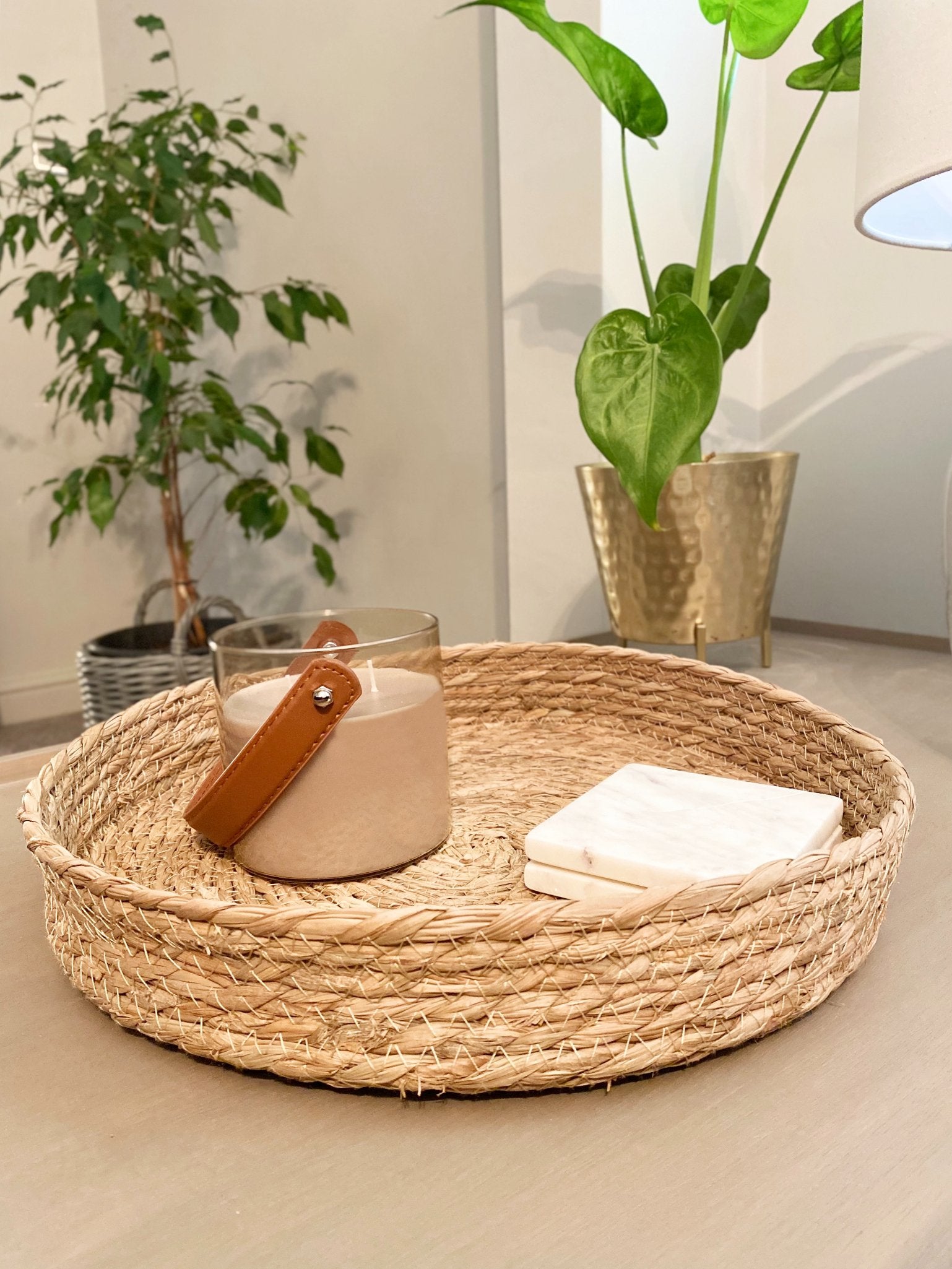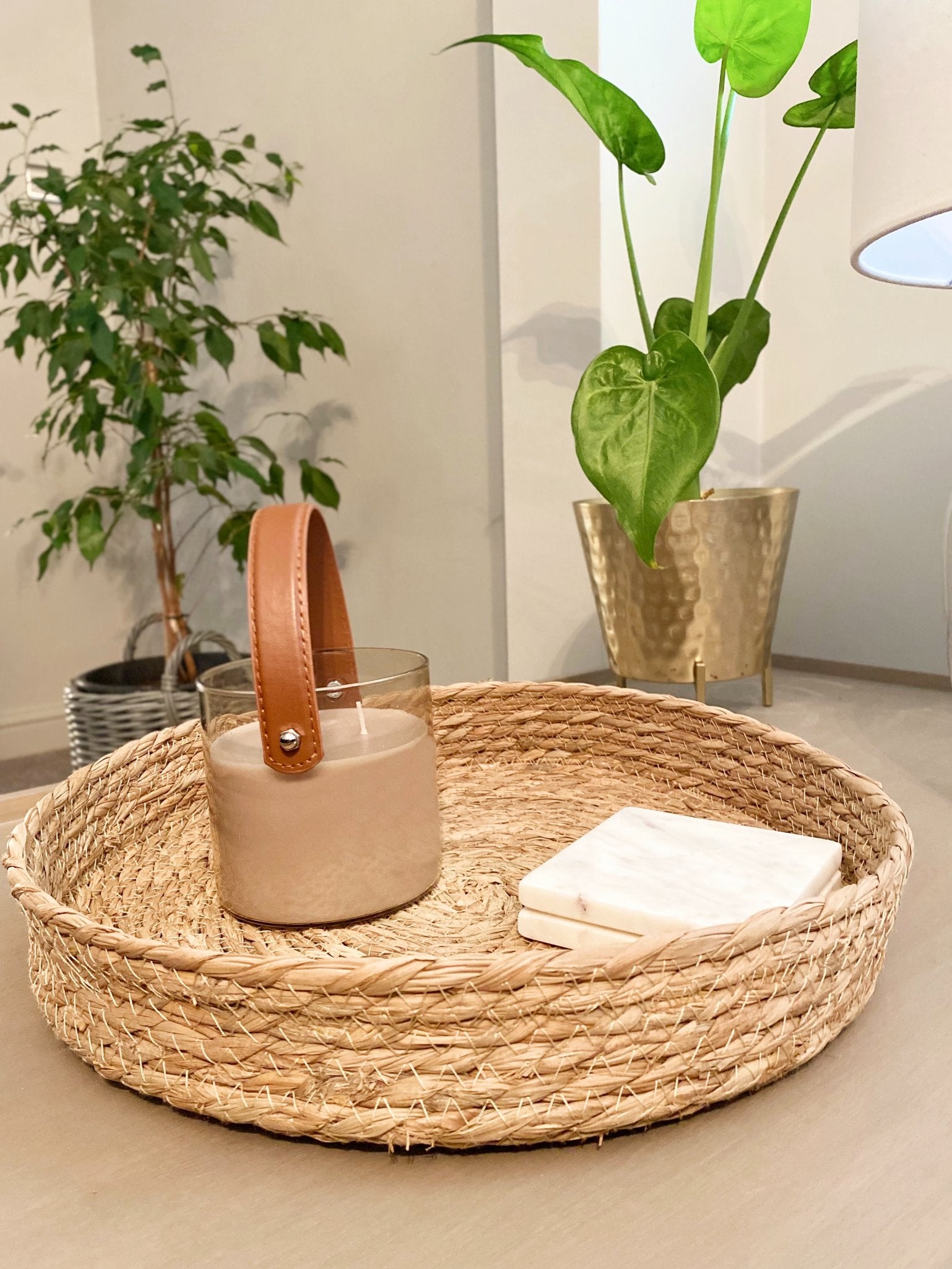 A luxurious, richly fragranced scented candle based on Pomegranate Noir. With leather effect handle. The glass holders can be reused as a candle holder once the candle has been burnt. Measurements: D10 x H10 x W10cm