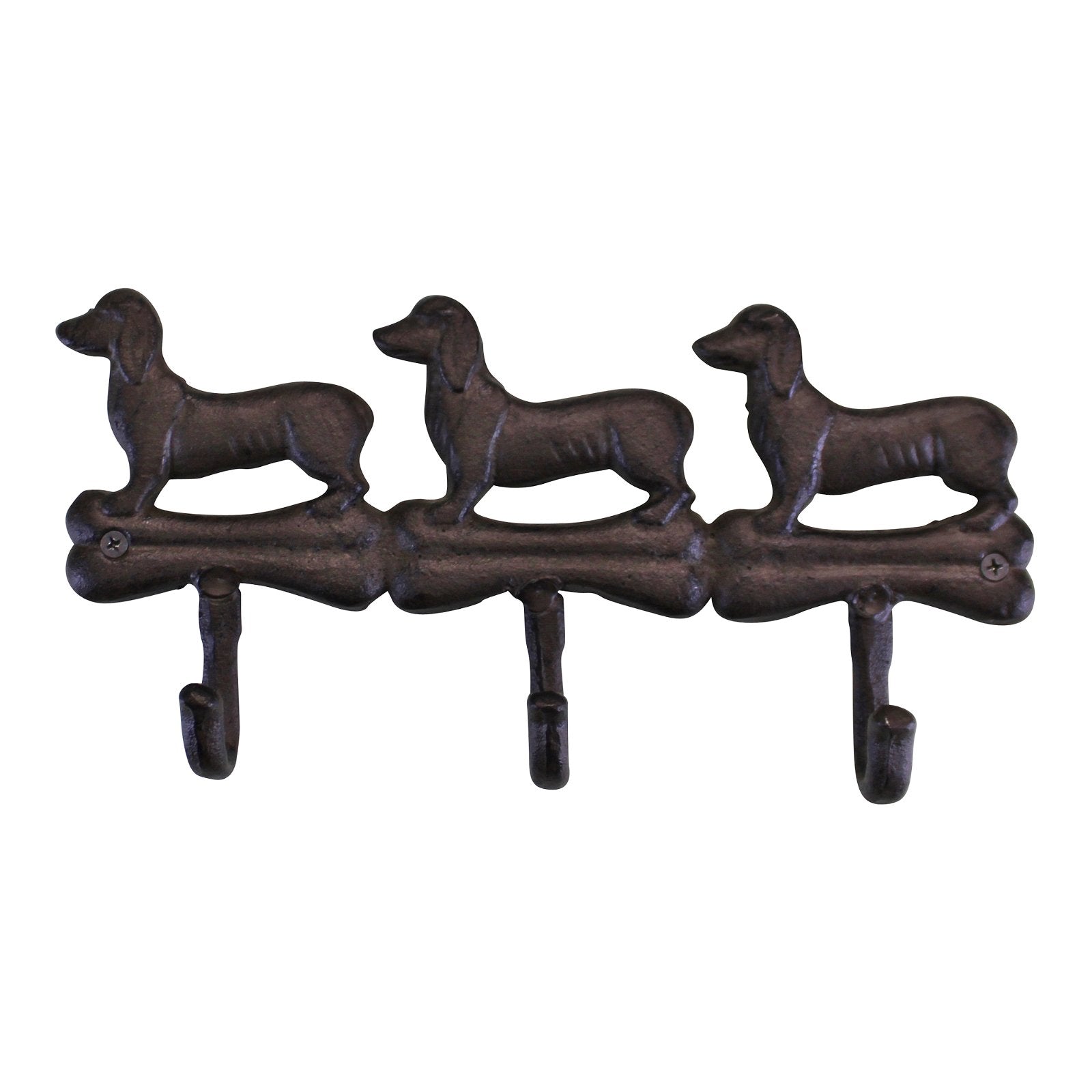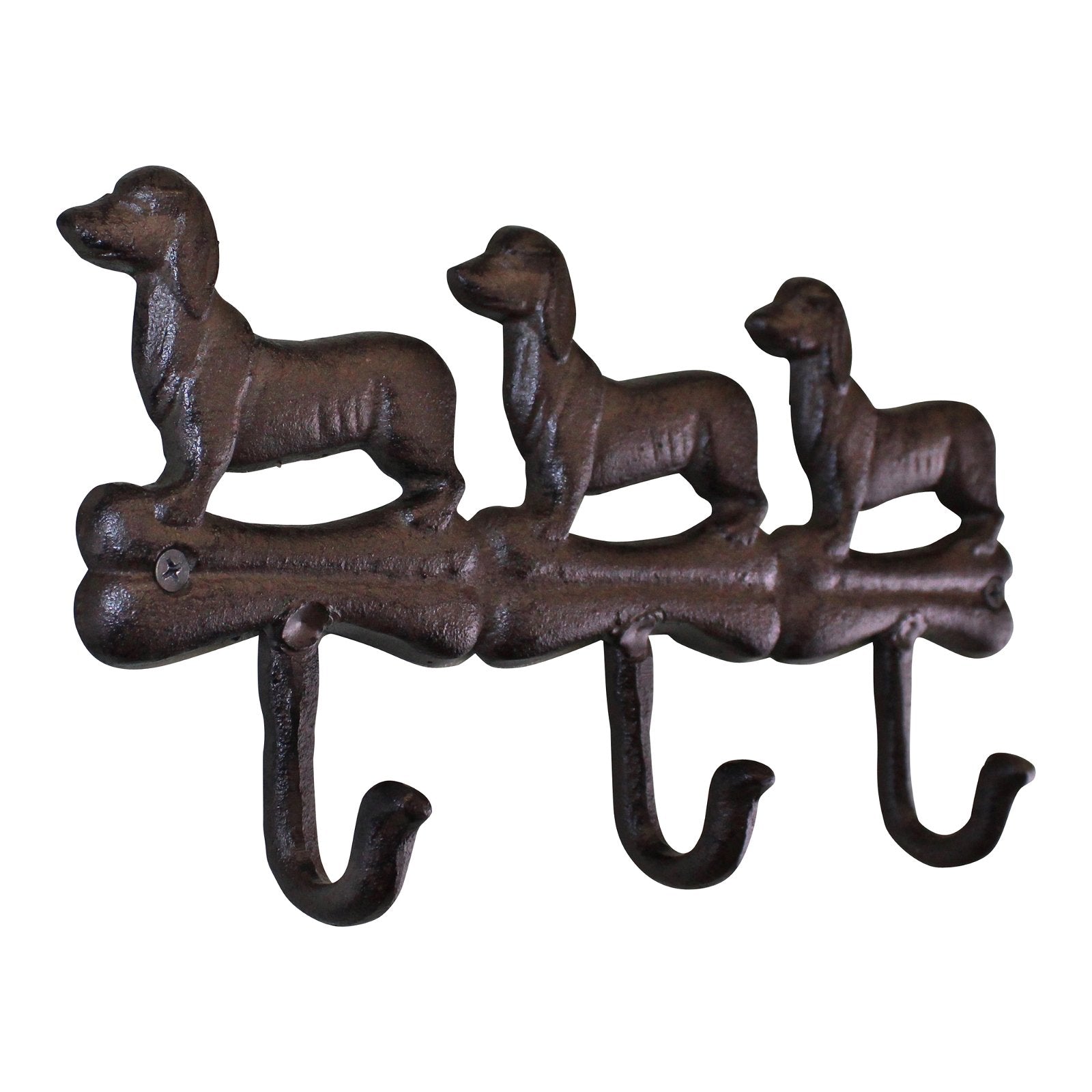 Rustic Cast Iron Wall Hooks, Sausage Dog Design With 3 Hooks