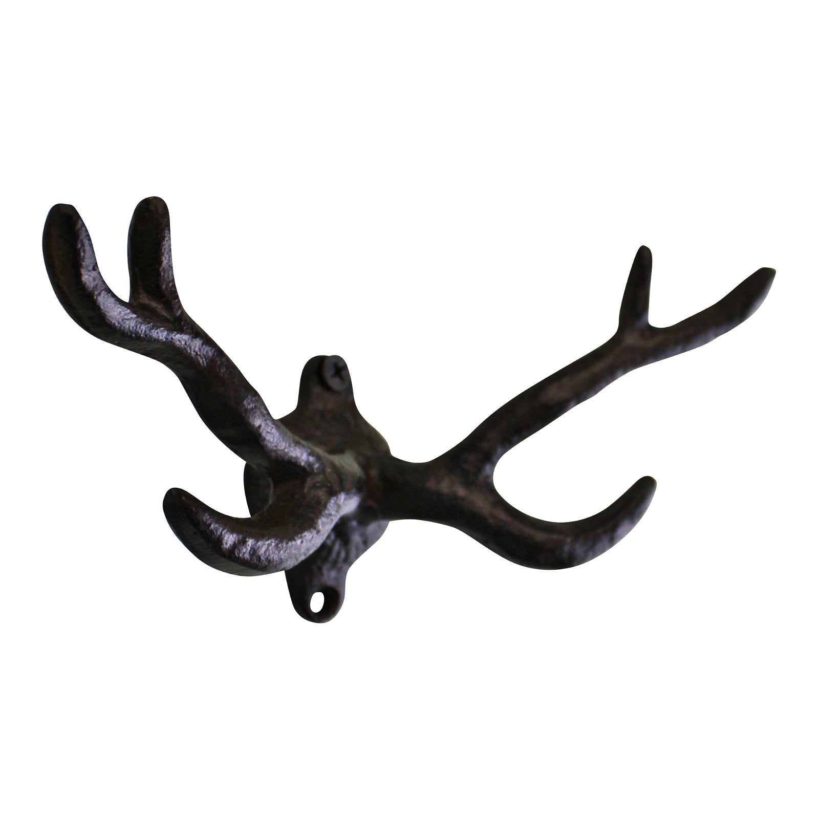 Rustic Cast Iron Wall Hooks, Stag Antlers, Small