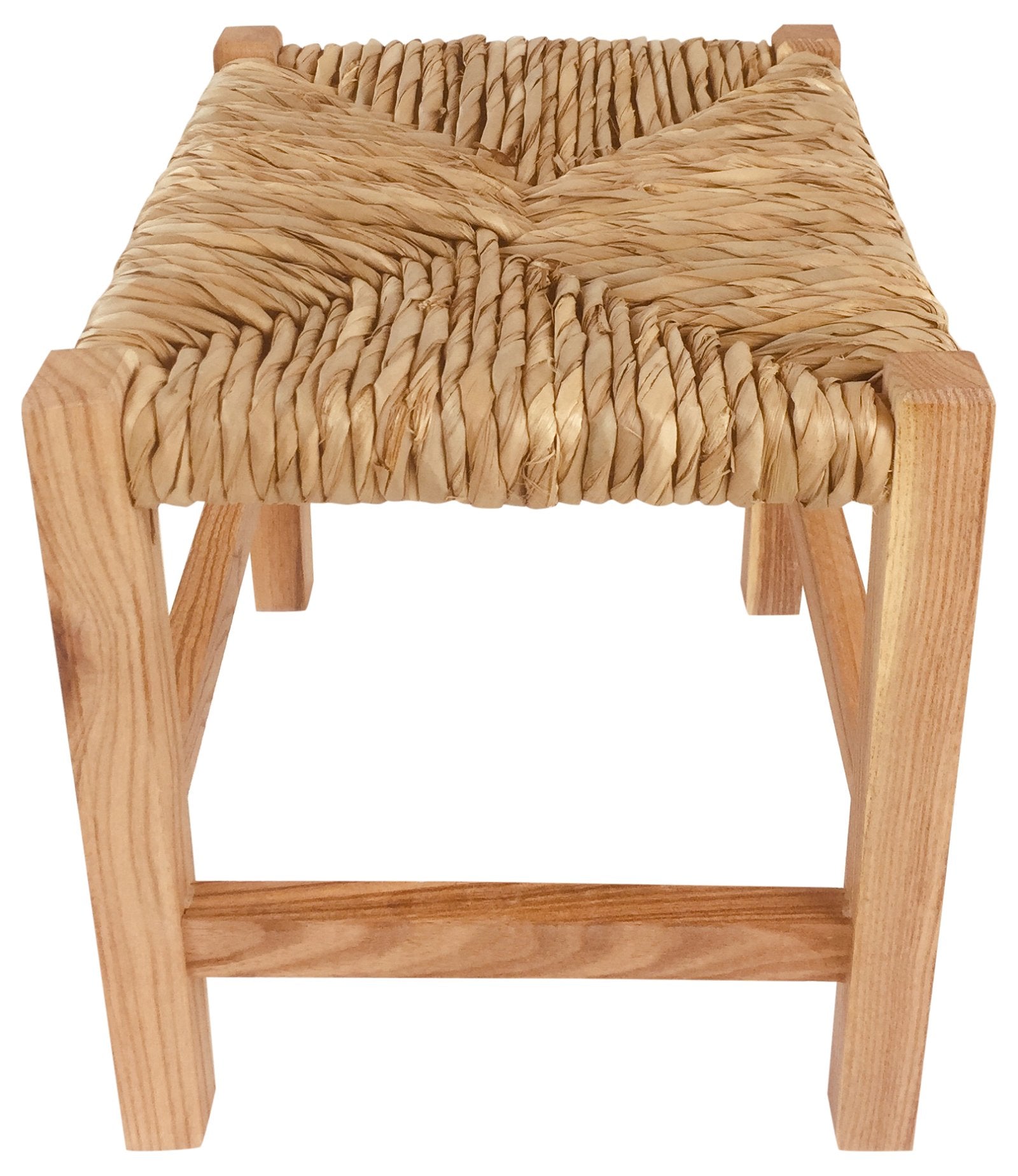 This is a lovely, small wooden stool boasting a woven raffia top with an overall simple, yet effective design. The sturdy, solid wood base is left with a natural finish to further add to the rustic look of the stool. Measurements: W30cm x D25cm x H28cm. The stool top is 4cm is depth.