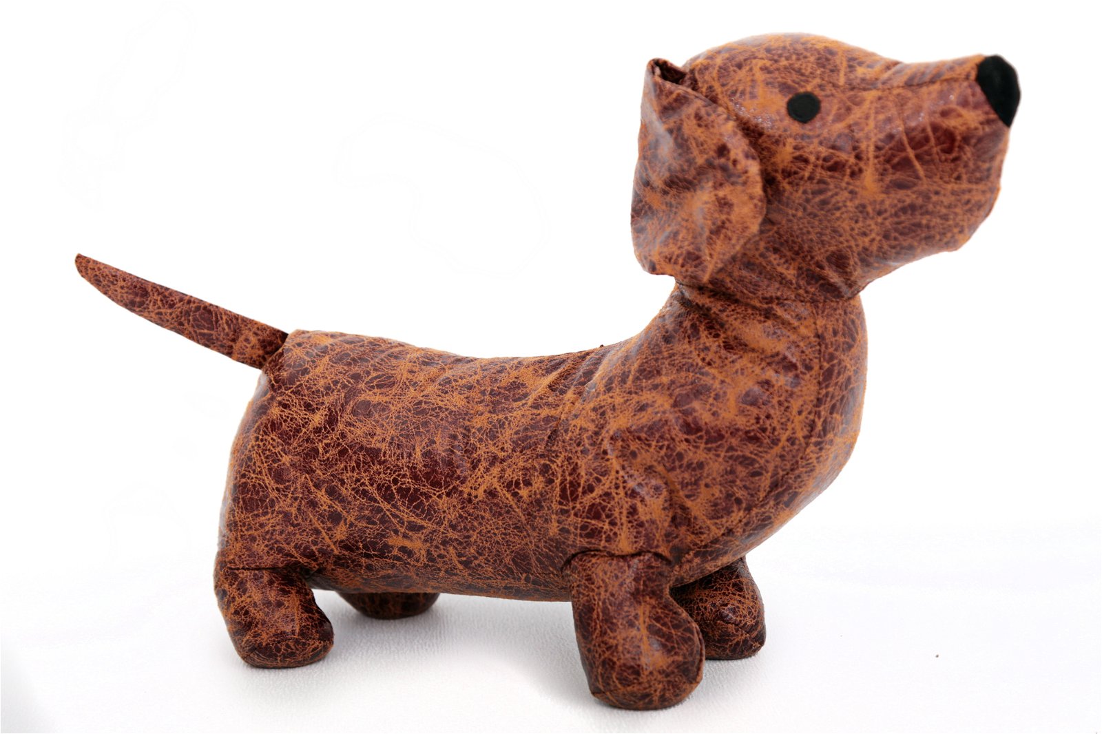 This adorable brown sausage dog doorstop is perfect for any animal loving home. The fabric has a distressed leather look and feel and would sit well in any shabby chic area. The doorstop is supplied pre filled and ready for use. A brown fabric dog doorstop is filled with 60% polyester and 40% sand. Measurements: D12 x H23 x W36cm SKU: TX1150