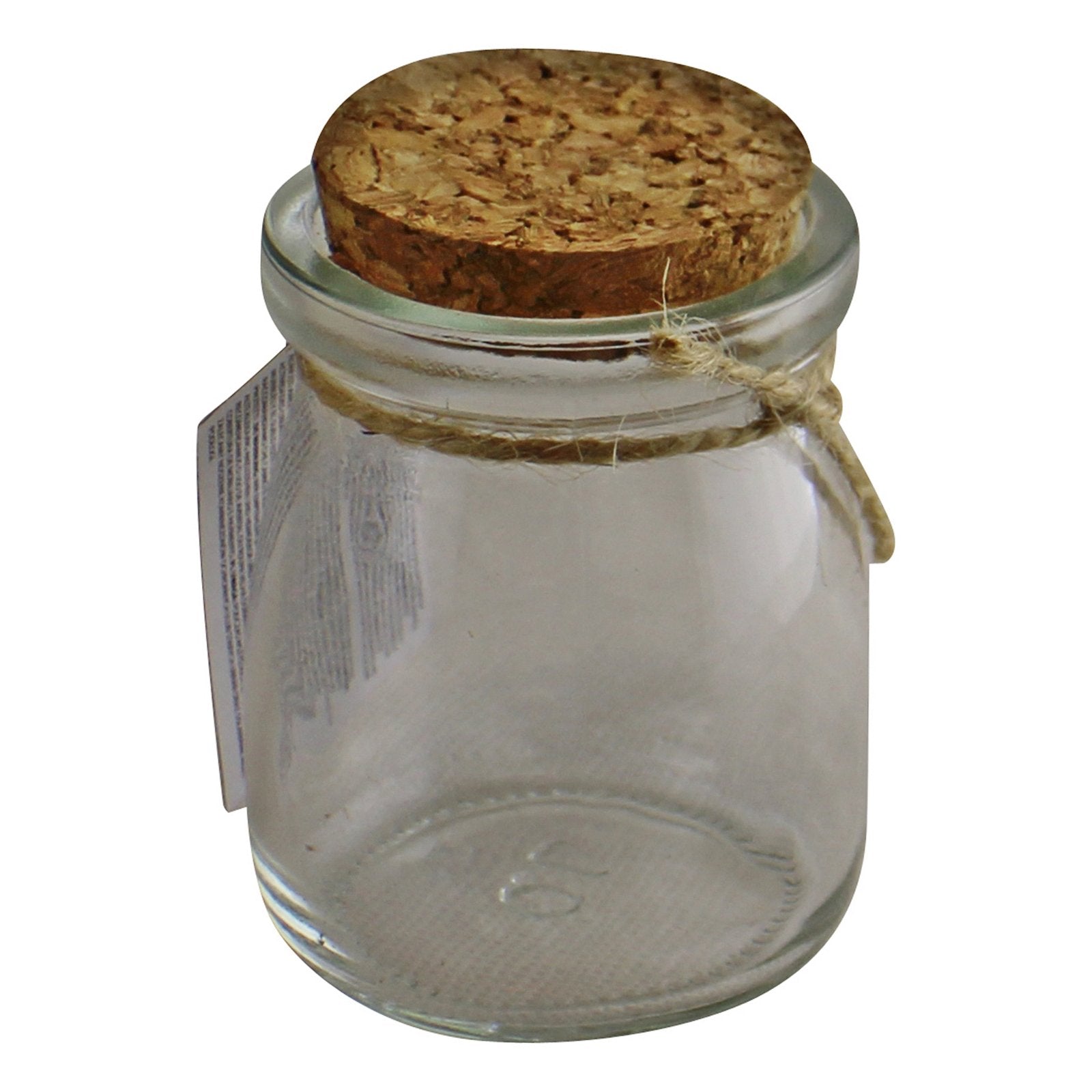 A set of 12 multi purpose glass storage jars that are ideal for crafting. Each jar has a cork stopper. The jars are made of glass with cork stoppers. Measurements: 6 x 7 x 6cm SKU: CR0621