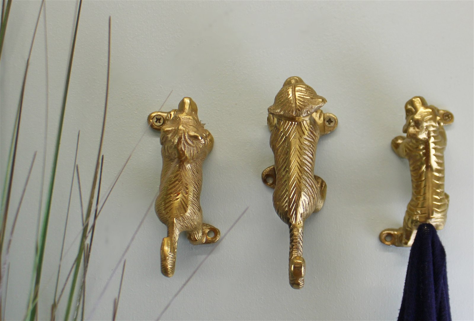Set of 3 Gold Metal Safari Animal Coat Hooks