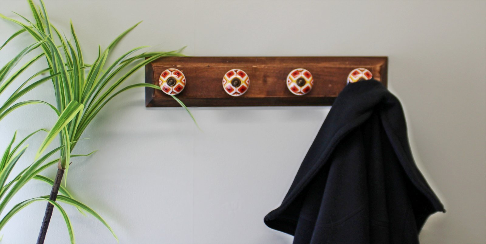 Set of 4 Kasbah Design Coat Hooks On Wooden Base