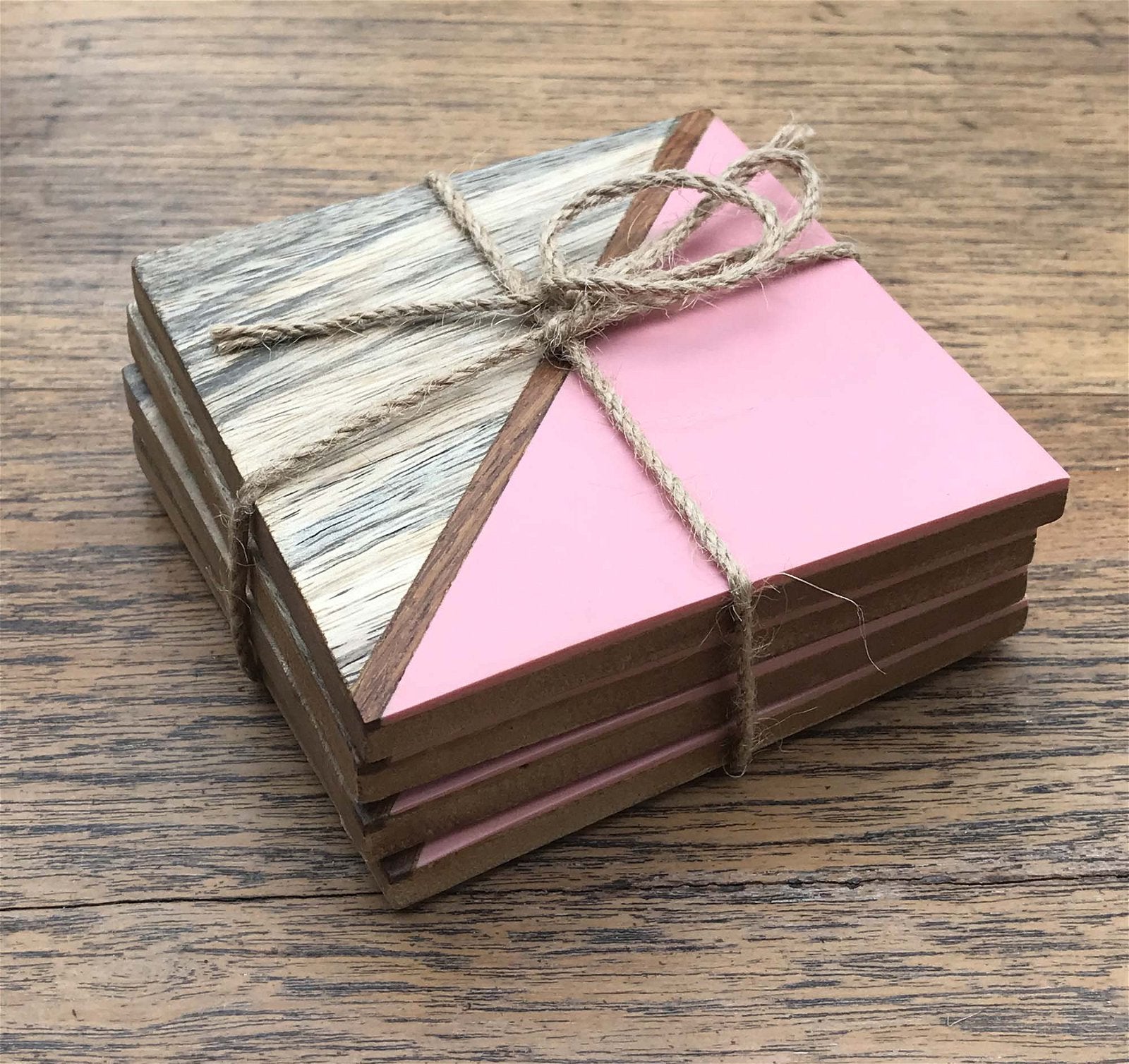 Set Of 4 Square Two Toned Wooden Coasters - Pink