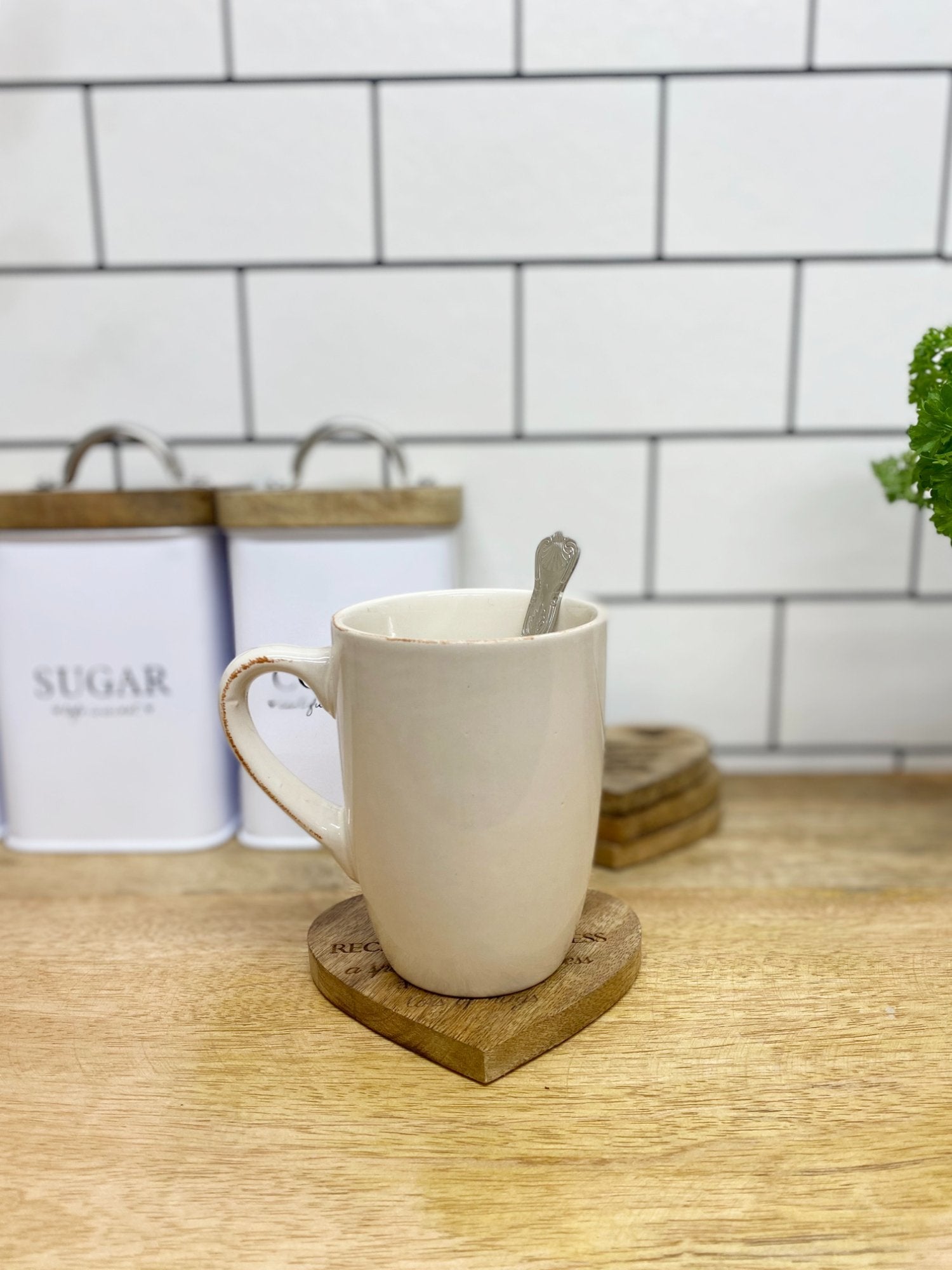 A set of four natural wood coasters with a sentimental message etched on each. Each Coaster has 3 white pads to prevent scratch marks and movement on any surface. Each coaster has a width of 10.5cm, 9.5cm length and 1cm depth. This rustic set will bring a natural charm to any home. The overall set measurements are: D5 x H10 x W11cm