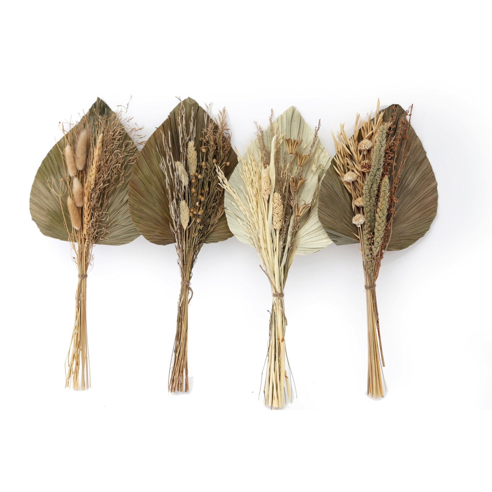 Set of Four Bouquets of Dried Grasses with Long Palm Spear