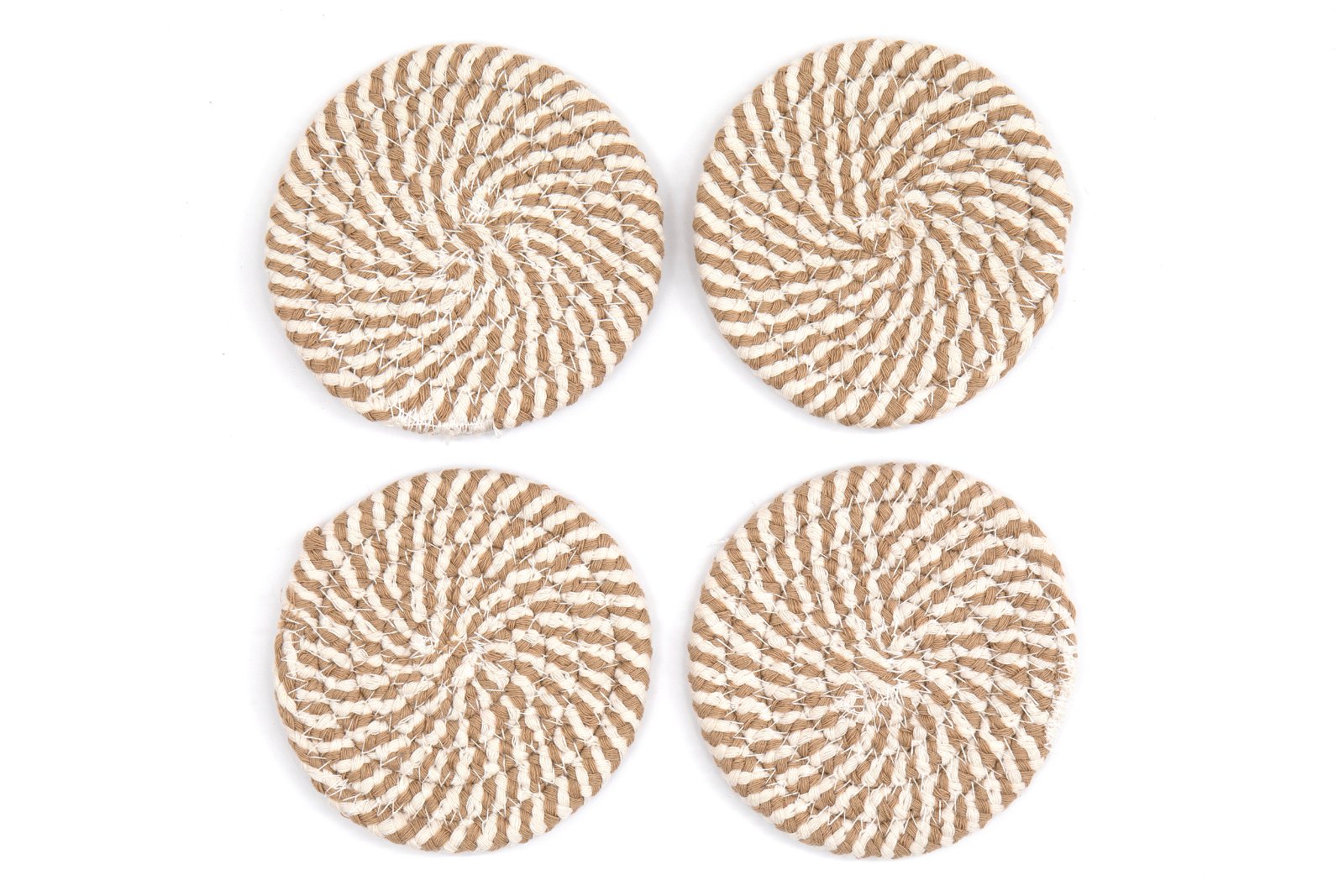 With their simple, minimalistic design and neutral colourway this set of four circular cotton rope coasters, will quietly dress any table setting. Durable and wrinkle resistant. Great house-warming gift to a new homeowner. Matching place mats available. Measurements: D1.5 x H46 x W8cm