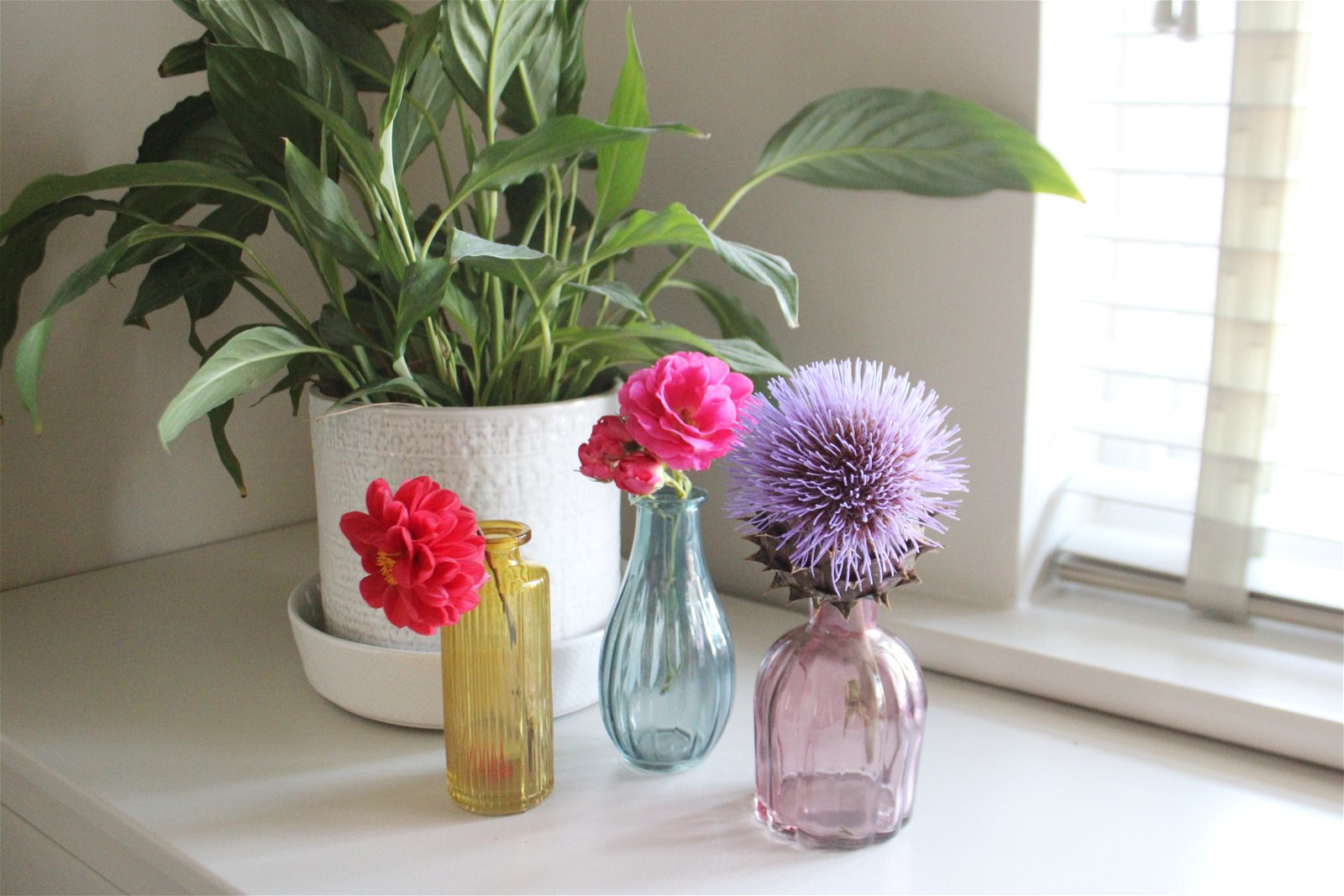 Set of three colourful ribbed glass vases. Brighten up your space with these stunning coloured glass bud vases. Featuring a smooth glossy finish and embossed ribbed pattern, a great way to add a touch of elegance and Boho style to your home. Measurements: D7 x H14 x W7cm