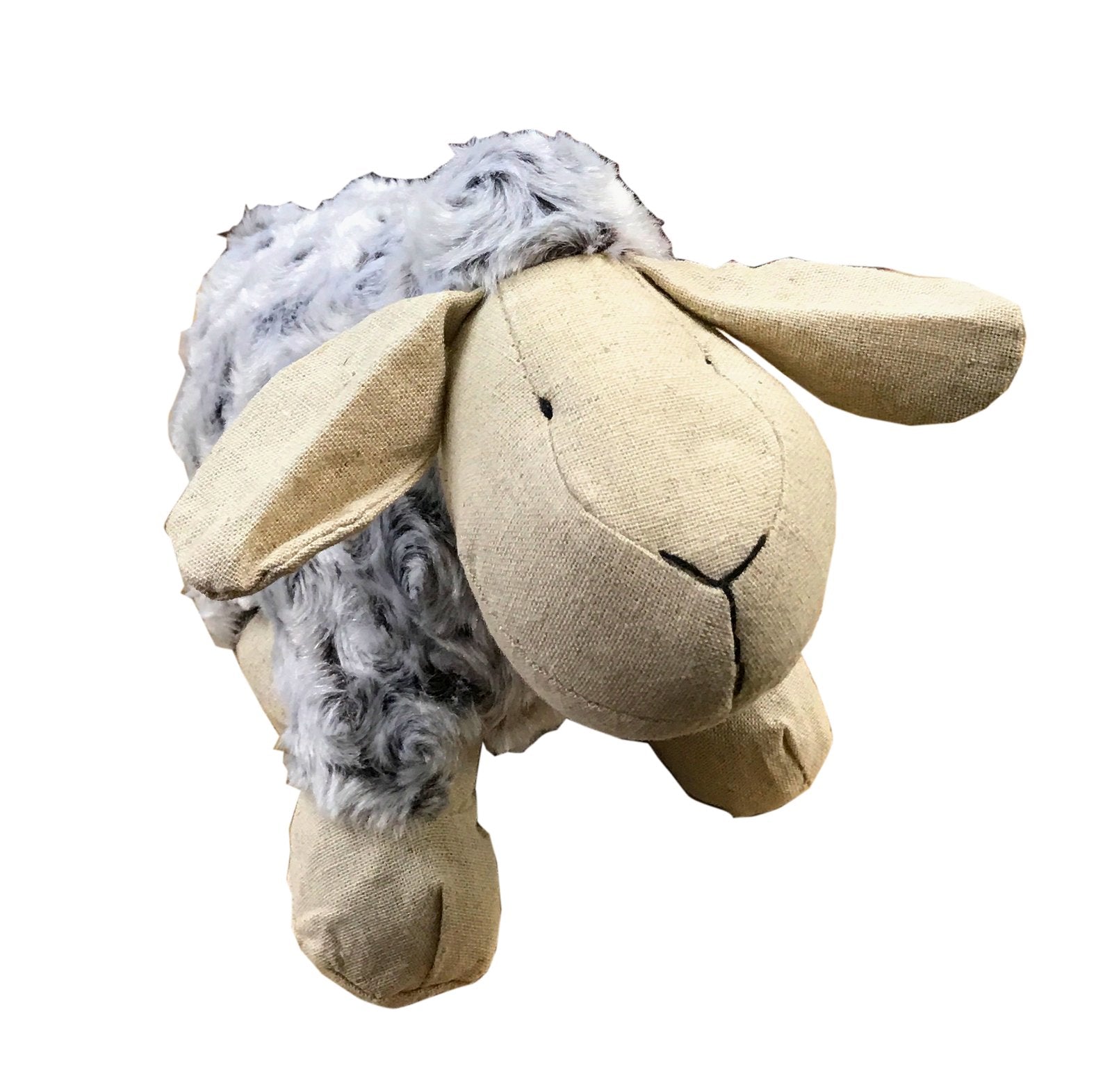 A grey doorstop with a soft fabric fur across the exterior. This sheep door stop would look at home holding open any door with its practical yet stylish design. Material breakdown: 55% Polyester + 15%Sand + 30%Cotton. Measurements: 25 x 15 x 20cm SKU: TX1163
