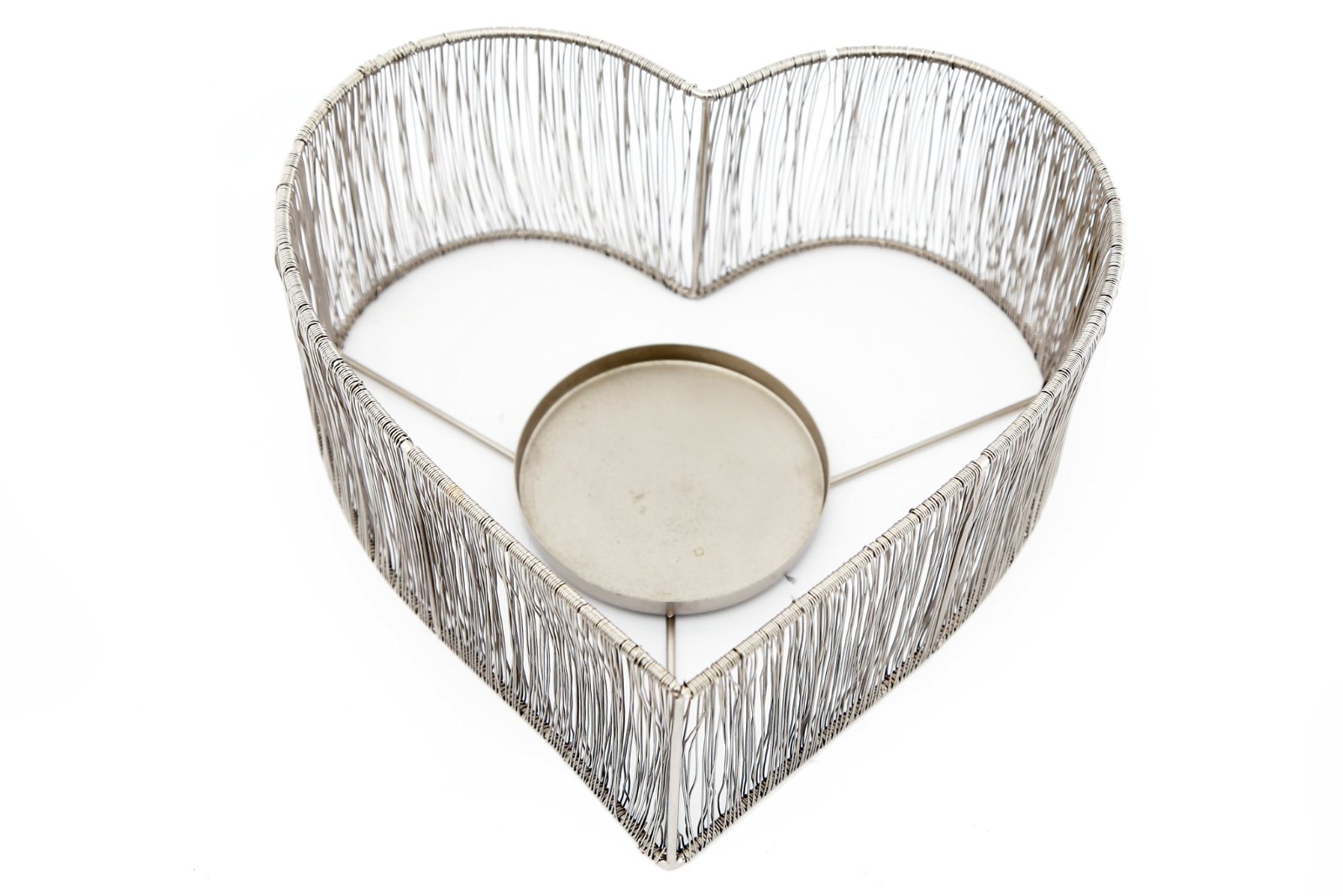 A simple but elegant candle holder, crafted from iron into a heart shape. With space on the candle plate to hold one pillar candle up to 10 cm in diameter. Measurements: D27 x H11 x W26cm