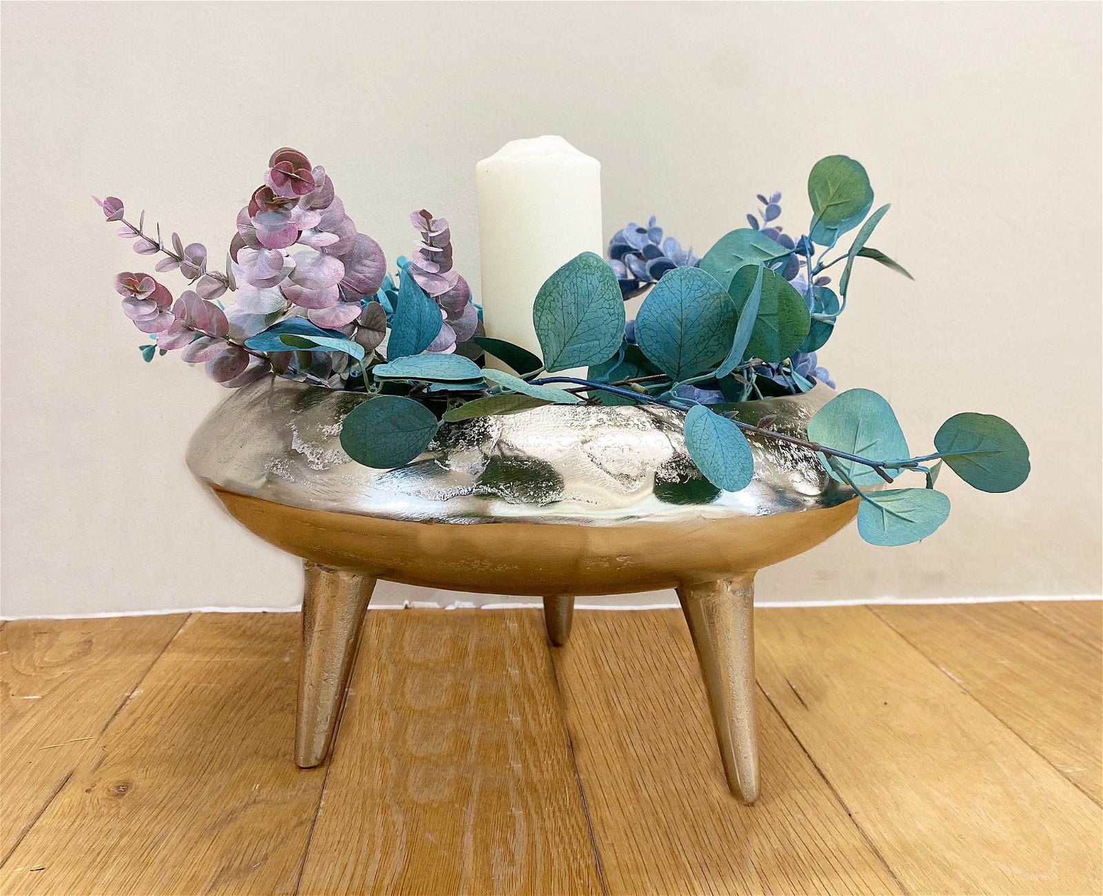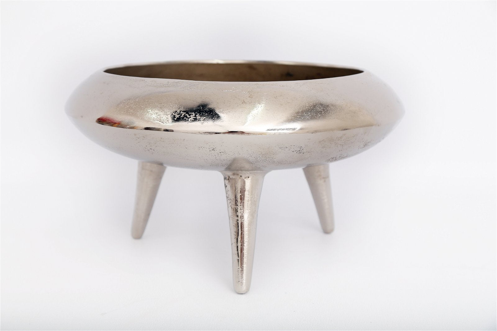 A silver metal planter with a diameter of 39cm that can be used as a decorative bowl or planter. Made of 100% aluminium, this piece is both stylish and durable. Measurements: D25 x H38 x W39cm