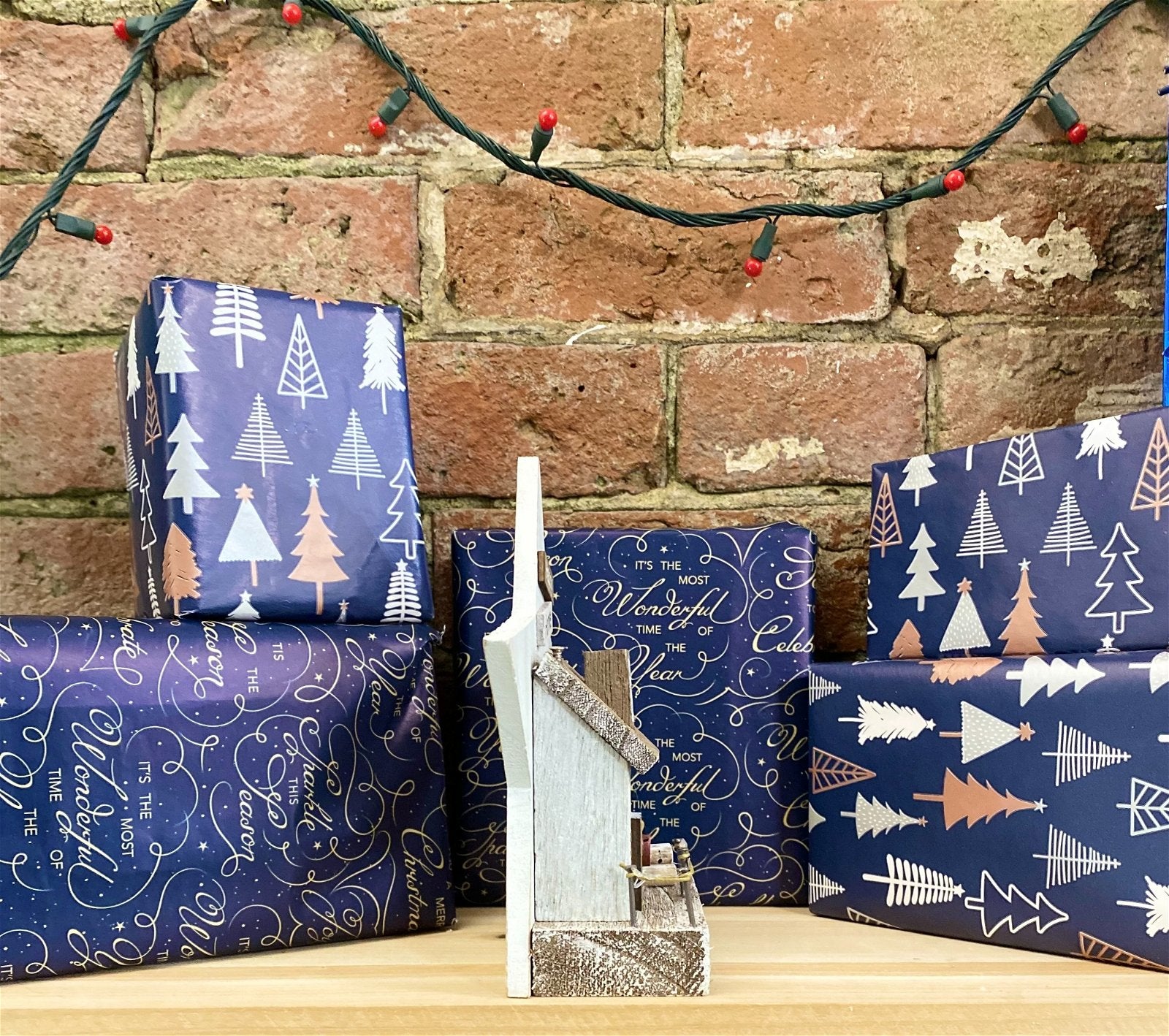 Wooden handmade table decoration. A festive piece depicting a Christmas scene made in wood on a rectangular base with a star shaped back drop. The base dimensions are 11x6cm with the back drop measuring 18cmx18cm. A decorative ornament to bring Christmas cheer into any home. Overall measurements: D6 x H18 x W18cm