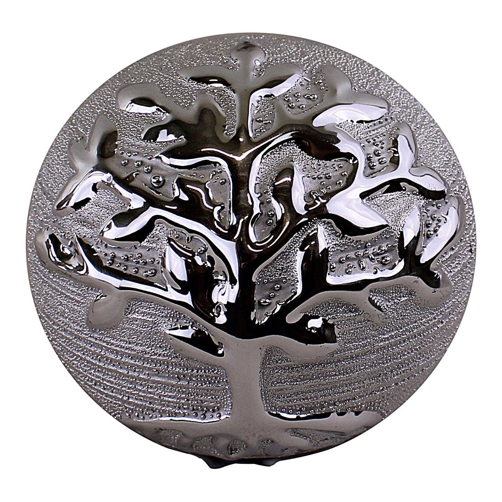 Part of our hugely popular tree of life range is this small ball decoration in silver featuring a tree of life to the front. Made of 100% ceramic. Matching items available. Measurements: 10 x 9 x 10cm SKU: TL0016