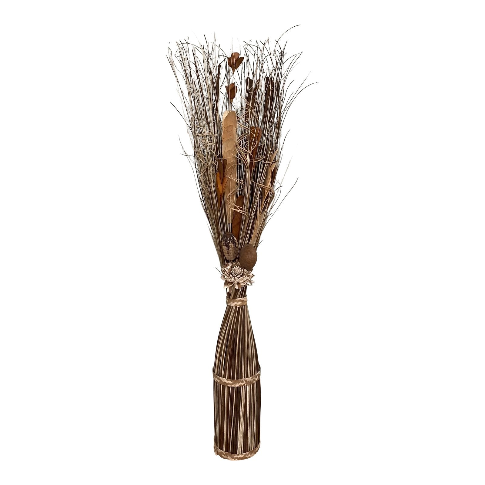 An attractive piece using natural materials, the base is in the shape of a vase and uses twisted stems, leading into an arrangement of grasses and dried flowers. The two tone design in cream and brown would compliment any space, placed on the floor or any raised surface. Overall Measurements: D11.5 x H99 x W27cm SKU: NI2016