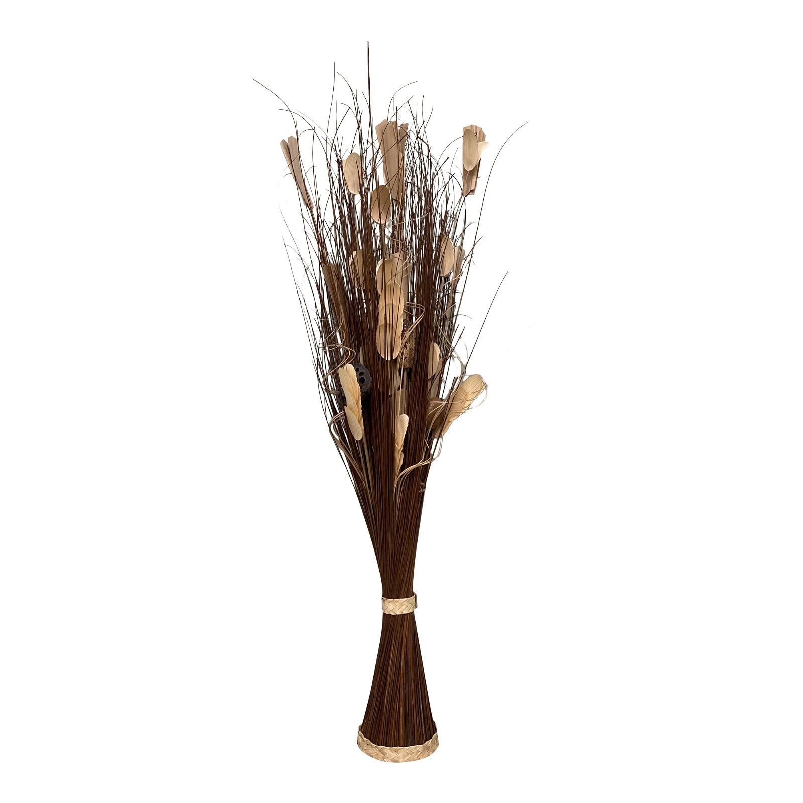 An attractive piece using natural materials, the base uses twisted stems, leading into an arrangement of grasses and dried flowers. The two tone design in cream and brown would compliment any space, placed on the floor or any raised surface. Overall Measurements: D11.5 x H99 x W27cm SKU: NI2017