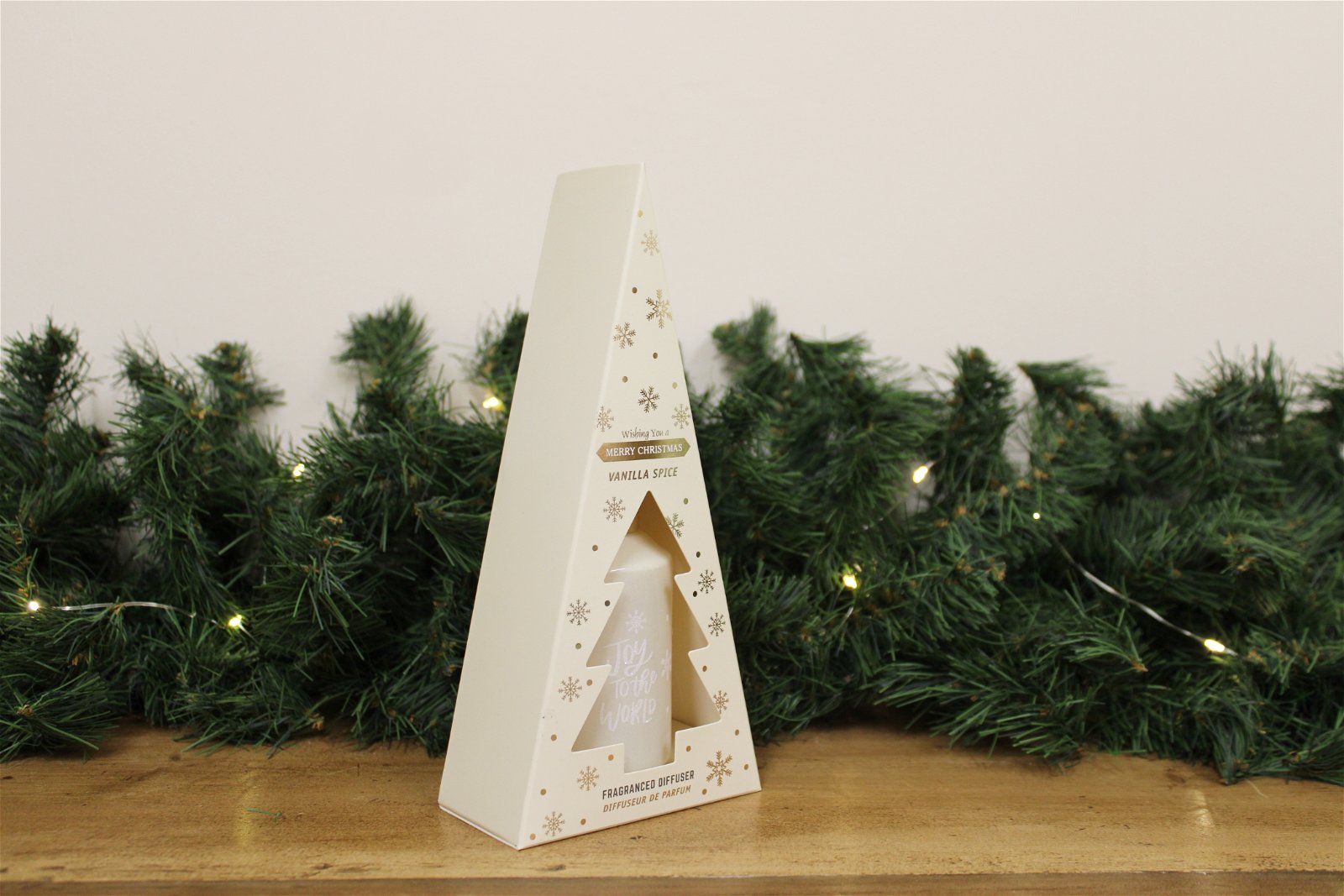 Vanilla Spice fragranced ceramic reed diffuser. 100ml of fragranced oil. Measurements: D5.5 x H23 x W10cm