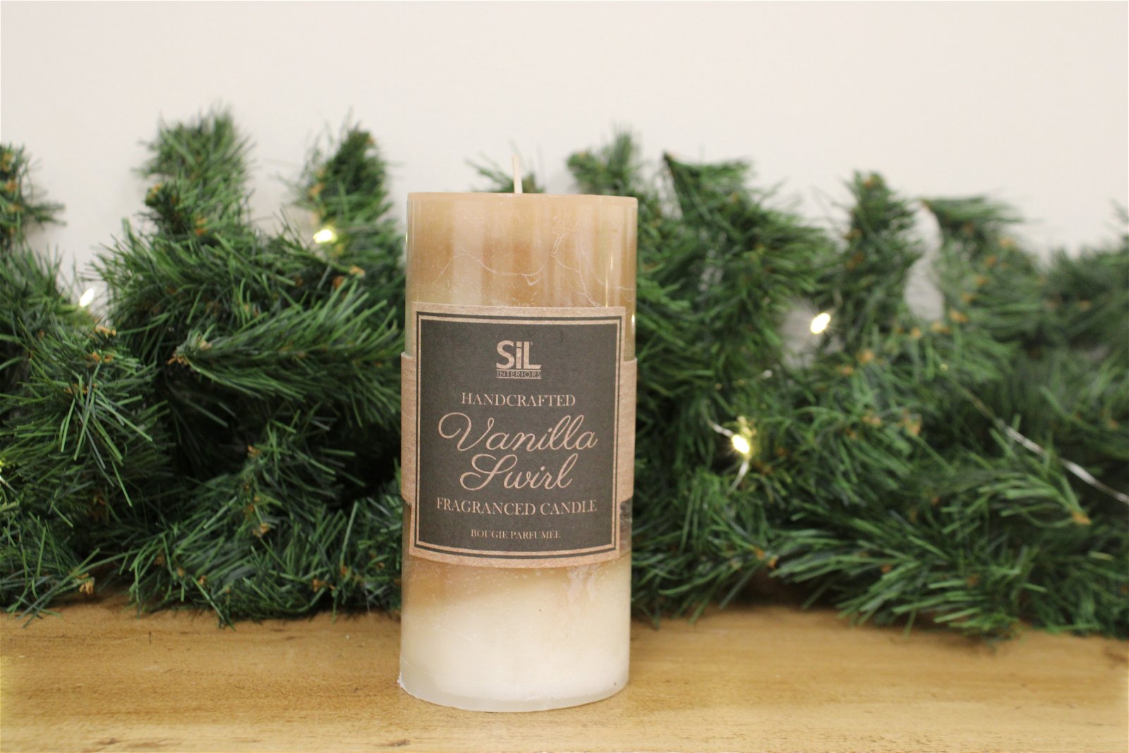 A Vanilla fragranced pillar candle with a unique colour gradient, giving it a warm neutral ombre appearance. The candle is made of high-quality wax, ensuring a clean and even burn throughout its 80-hour lifespan. Perfect gift idea. Measurements: D7 x H15 x W7cm