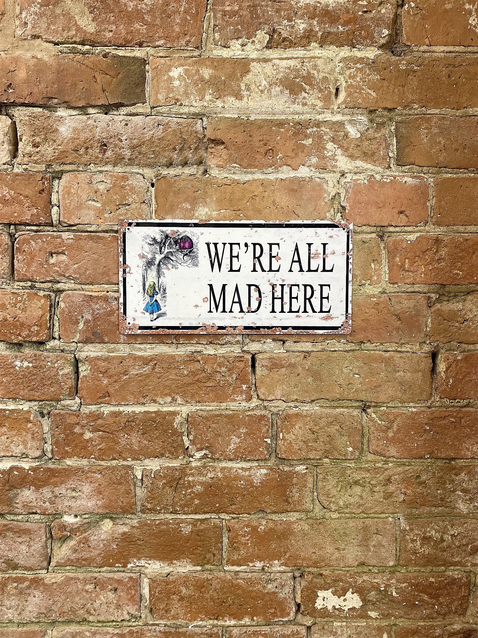 Vintage Metal Sign - Alice In Wonderland - We're All Mad Here