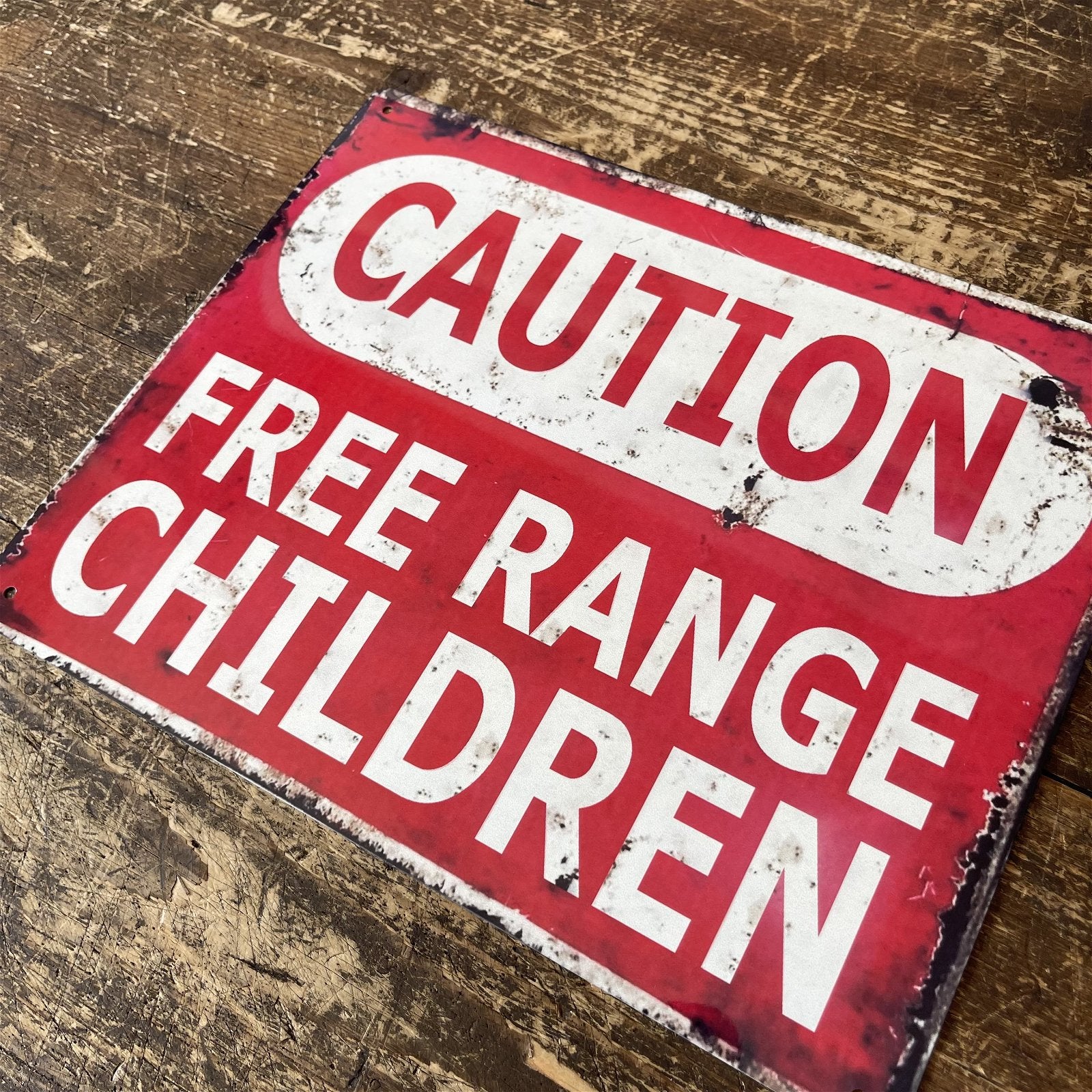 Vintage Metal Sign - Caution Free Range Children Wall Sign