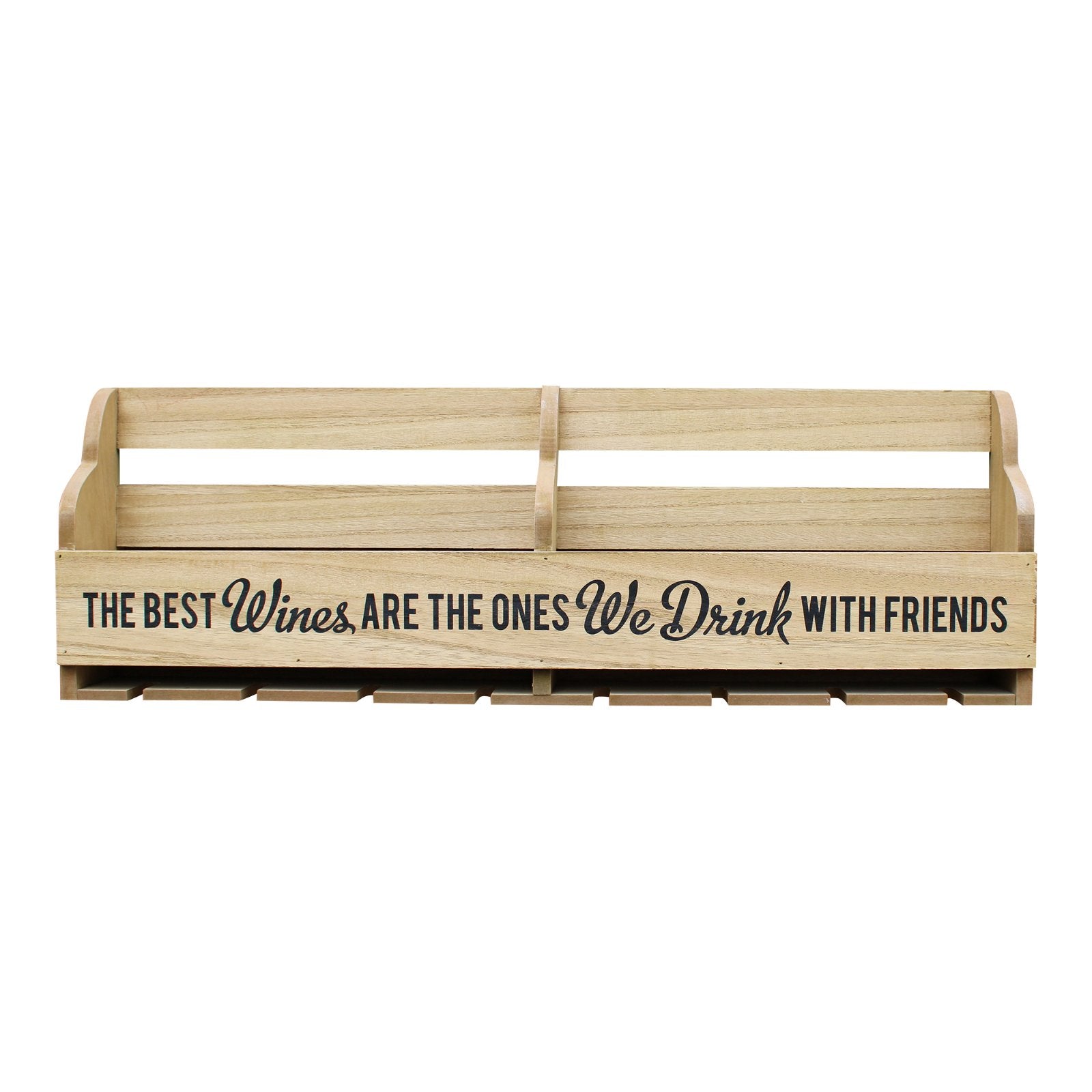 Featuring the slogan 'The best wines are the ones we drink with friends'. Made of MDF, with space for up to 8 bottles of wine and 8 wine glasses. Measurements: 10 x 24 x 73cm SKU: KG0641