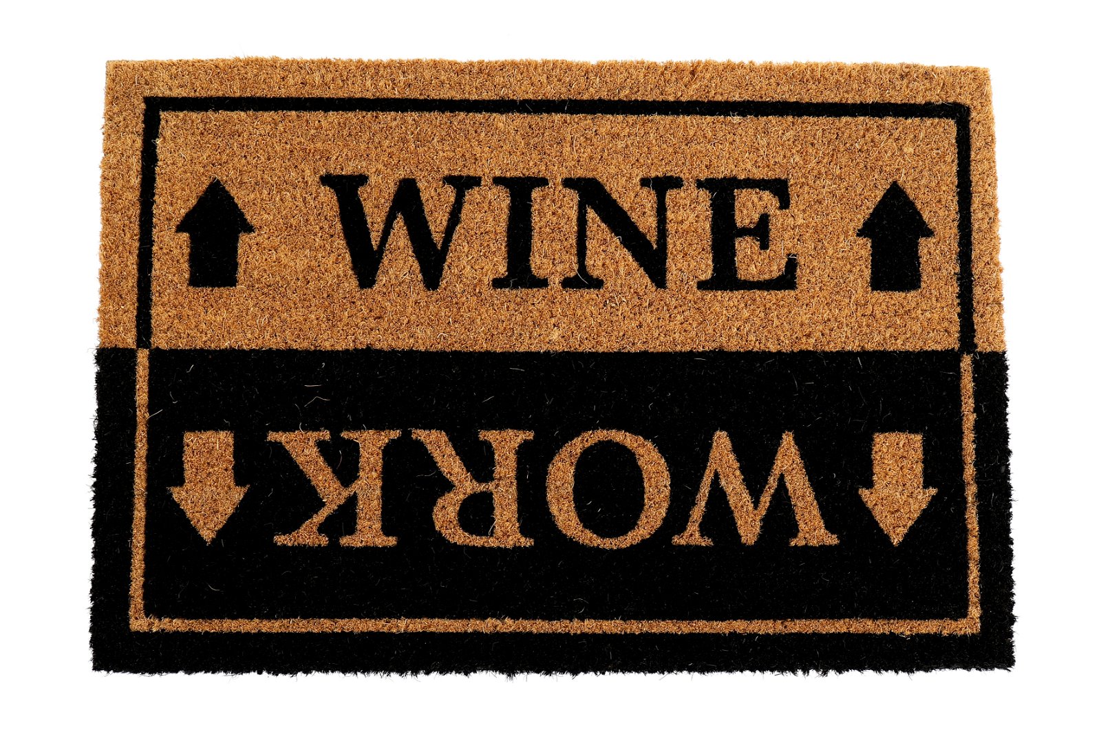 A humorous door mat with half the mat saying WINE and half the mat saying WORK with corresponding arrows. This would be perfect as a present for any hard working individual who likes wine or even in the office as a humorous touch to the working environment. Measurements: D1.5 x H60 x W40cm SKU: DM0073