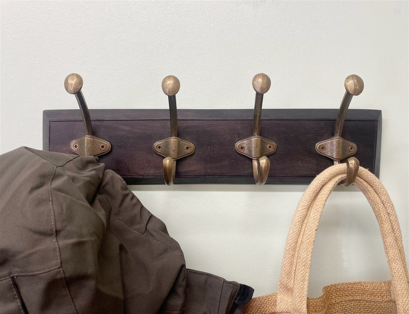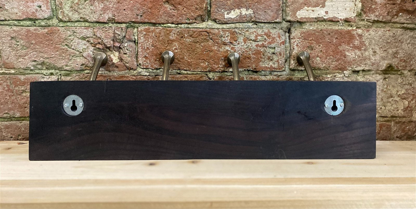Wooden Base With 4 Brass Coat Hooks